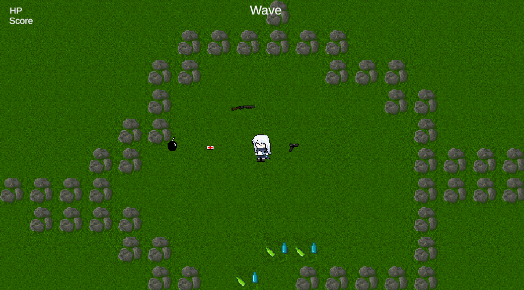 This game is a 2D twin-stick shooter. The player must survive waves of zombies that rush toward them.